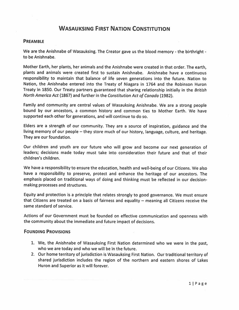 Wasauksing First Nation Constitution: